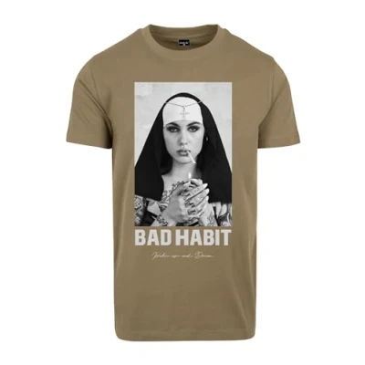 Mister Tee Bad Habit Men's T Shirt with Photo Print for Men, Regular Fit, Cotton, Sizes XS 5XL, Olive, XXL