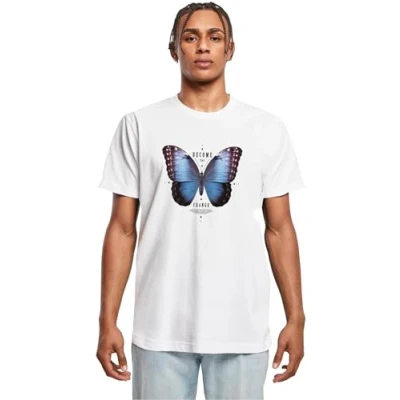 Mister Tee Men's Herren Become The Change Butterfly White, S T Shirts,