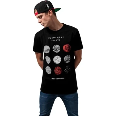 Plain Black men's shirt with a stylish motif Statement strong logo print on the front of twenty-one pilots Merch code stands for Merchandise with unique designs by the latest and traditional popular bands, movies and more Significant logo front print from Twentyone Pilots.