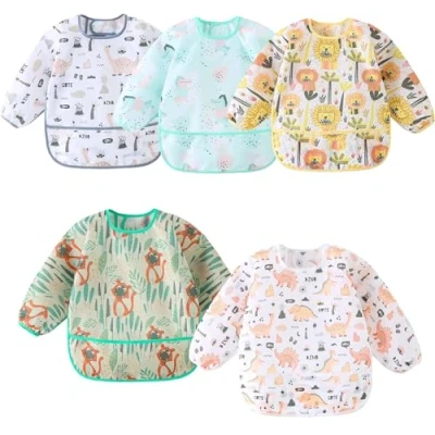 MistQin Long Sleeve Baby Bibs,5 Pcs,Waterproof Bibs with Sleeves,Lightweight Wearable Smock Bib 3 30 Months (5 Pcs Set A)