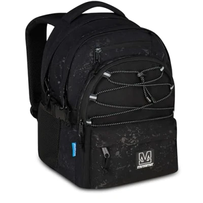Mitama BDBF Black SPLASH School Backpack, Triple Compartment, Integrated USB Port, Adjustable Width, Backpack