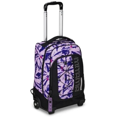 Mitama DR School Trolley Full Flower, with Mega Compartment and Double Handle, Black Pink, Elementary Leisure, Girl, Black, Taglia Unica,