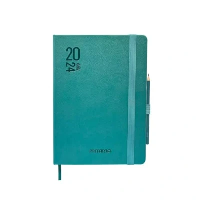 MITAMA Elegant Turquoise Diary Daily Planner 12 Months 2024 366 Pages + 66 Extra Contents Faux Leather Cover Matching Pencil 15 x 21 cm