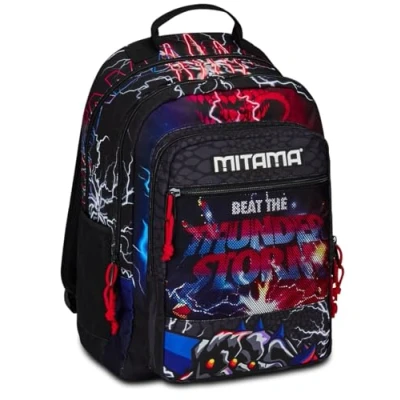 Mitama Monster Bite Triple Compartment Backpack with Front Pocket, Black and Red, Elementary School Leisure, Child Boy, Black, Taglia unica, Rucksack Backpacks