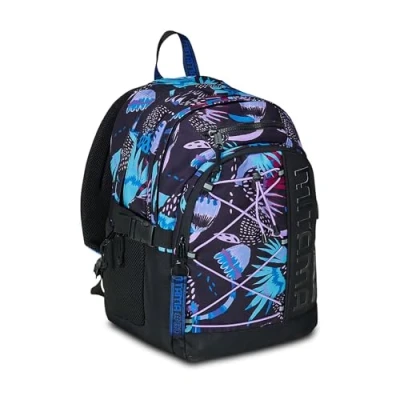 Mitama Purple Bloom Triple Compartment Backpack with PC Pocket, Black and Purple, Elementary School Leisure, Girl, Black, Taglia Unica,