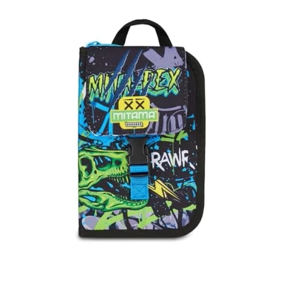 Mitama School Pencil Case 4 Zip, Black, Triple Compartment Pen Holder Complete with Pens, Pencils, Colours, Accessories Backpack, Elementary School, Children, Modern