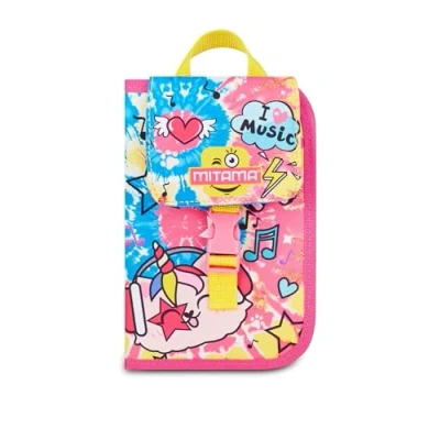 Dimensions: 21 x 14 x 8 cm Pockets: Triple compartment Inside you will find 43 pieces of school supplies: 2 blue and red ballpoint pens, 2 HB pencils FLUO barrel, 2 HB GRAPHO pencils, 1 FLUO eraser, 1 FLUO bin sharpener, 1 ruler 15 cm FLUO, 16 crayons, 16 markers. Slime activator included. Material: Polyester This triple compartment pencil case is the ideal solution for organizing everything you need for school. With its colourful design, it is designed for primary school children. Made of durable polyester fabric, this pencil case combines practicality and quality.