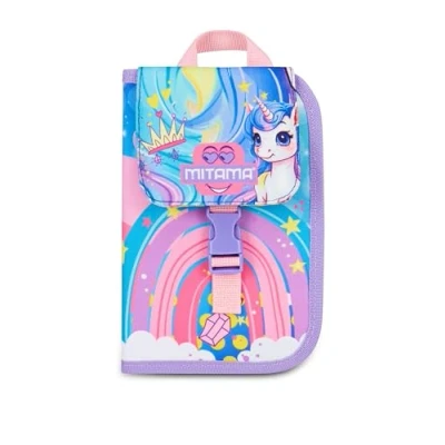 Mitama School Pencil Case 4 Zip, Lilac, Triple Compartment Pen Holder Complete with Pens, Pencils, Colours, Accessories Backpack, Elementary School, Girl, Modern
