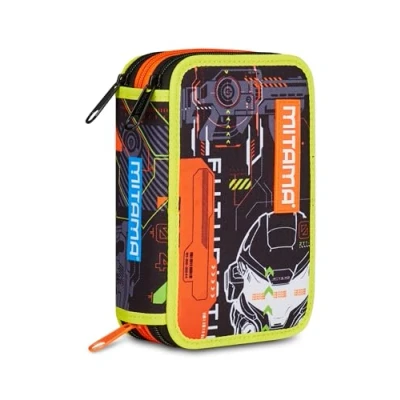 Mitama School Pencil Case with 3 Compartments, Neon Battle, Markers, Pencils, Crayons etc.