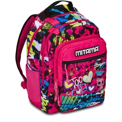 Mitama Too Cute Triple Compartment Backpack with Front Pocket, Pink and Black, Elementary School Leisure, Girl, pink, Taglia unica, Rucksack Backpacks