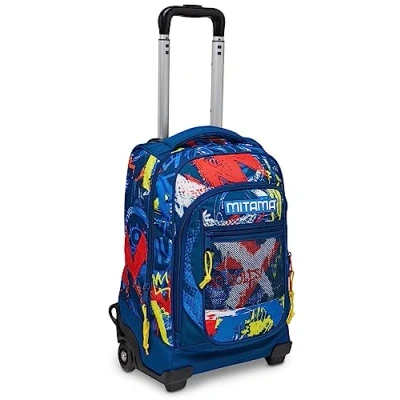 DIMENSIONS: 31x20x49 cm; CAPACITY: 30 lt SHOULDERS: FAST'N GO system, with length adjustment tape is designed to not touch the ground, avoiding dirt and breakage. Shoulder Protection Pock STRUCTURE: The internal structure is made of plastic and metal: it holds wheels and handle. The double bar telescopic handle adapts to the boy's height to carry the weight better. POCKETS: Double zipped compartment for better material division. Storage compartment. Contrast front pocket with handy pen holder for even more efficient organization. Pen Holder Lining. FEATURES: Pull or wear as a backpack, school or hand luggage. By pulling the load you can distribute the efforts, preventing the weight from serious only on the shoulders.