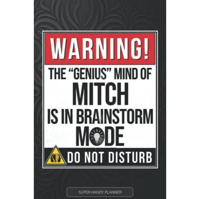 Mitch: Warning The Genius Mind Of Mitch Is In Brainstorm Mode Name Custom Gift Planner Calendar Notebook Journal