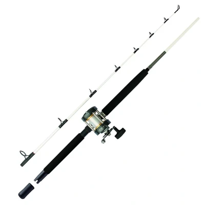 Mitchell Performance - A complete set for sea fishing from the boat! - Length: 1.80m (2-piece) - Test curve: 15-40lbs - Strong blank - EVA handle - Mitchell CT300L reel - Left handed - Weight: 887g - Reliable drag - 1 ball bearing - Fully spooled with 50lb nylon line - Powerhandle for extra support - Suitable for bottom fishing or trolling This Mitchell Performance is a nice all-round set made for hunting sea fish from the boat. The set consists of a 2-section Mitchell Performance rod with a matching Mitchell reel that is already spooled with quality line. This will get you started on challenging sea fishing right away! Note: This reel is left-handed. This means that you hold the rod in your right hand and turn the crank with your left. This type of reel is used in 99% of the cases in Europe.