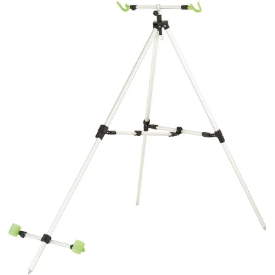 Mitchell Suprema Tripod B - Maximum length: 180cm - Robust aluminium construction - Two telescopic and lockable front legs - Glow-in-the-dark parts for optimum visibility in the dark - Compact transport format - Two handy hooks - Fully adjustable - Ideal for beach fishing, fishing from piers and surfcasting Fully adjustable tripod with luminous supports for optimal visibility in the dark. Specially developed for all coastal techniques such as beach fishing, pier fishing and surfcasting. Compact transport size and equipped with two handy hooks for various accessories or to make the tripod heavier in windy conditions.