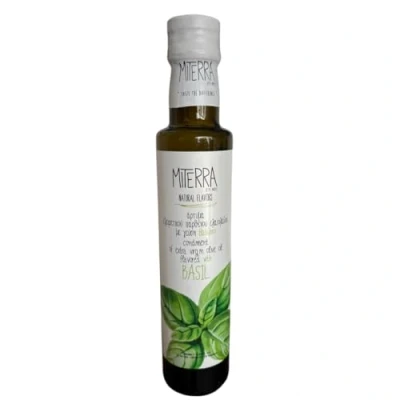 Miterra Extra Virgin Olive Oil flavored with basil is a delicious accompaniment to salads, pasta, risotto, pizzas, tomato sauce, pesto sause & seafood dressings. It is also great as appetizer with small bruschettas or rusks. Miterra Flavored olive oils are a great way to elevate dishes with minimal effort! They can add a burst of taste and aroma to a variety of meals. Miterra Flavored olive oils can be used in Drizzling, Salad Dressings, Marinades, Dipping, Roasting Vegetables or as a Finishing Touch Miterra Flavored olive oils can also be used to Enhance Simple Dishes, Complement Fresh Ingredients, in Baking, in Sautéing, in Grilling or even in Cheese Pairing - the combinations are unlimited!