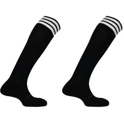 Mitre Adult Mercury 3 Stripe Football Socks Team Kit Lightweight Long Sock Breathable Sports Sock, Black/White, Senior (7 UK 12 UK)