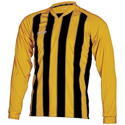 Classic vertical stripe design jersey with modern collar detailing Colour-blocked back ideal for name and number Hard-wearing polyester fabric with mesh ventilation keeps players cool