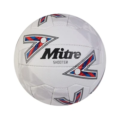 Mitre Shooter Match Netball Great Grip Durable Design, White/Red/Blue, 5