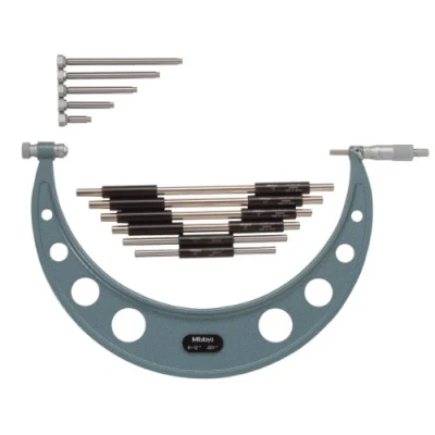 Mitutoyo 104 138 Outside Micrometre with 6 Interchangeable Anvils and Standards, 6" 12" Range, 0.001" Graduation