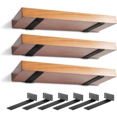 MIUGO 6 Pack Heavy Duty Shelf Brackets 8 inch, Floating Brackets(1/5 Thick), L Shaped Wall Hidden & Decorative Bracket Black