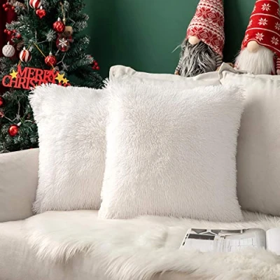 MIULEE Christmas Pack of 2 Faux Fur Cushion Covers Fluffy Soft Decorative Square Pillowcase Plush Case Throw Pillow Cover For Livingroom Sofa Bedroom 18x18 Inch 45x45cm 18"x18" White