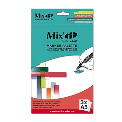 The palette mix' translucent synthetic made from untearable material which acts like a paint pallet but it is a sheet for the pens. is perfect for the mixed alcohol or water based felt tip pens markers. To work directly with the pens on the sheet, or with a brush for the colors at a water base, or in prélevant colour with the blender for alcohol based markers. Non porous, it gets the ink pads and also supports liquids. Once dry, the colours réactivent marker blendeur, or water. Washes off with alcohol and can be reused many times.
