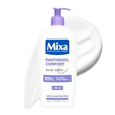 Mixa Panthenol Comfort Soothing Body Lotion for very sensitive skin, 10% Glycerin & Panthenol, instant skin relief and anti itch protection, fragrance free, babies, children, adults, 400ml