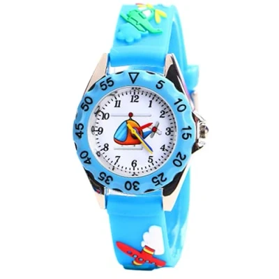 Mixe Waterproof 3D Cute Cartoon Silicone Wristwatches Time Teacher Gift for Little Girls Boys Kids Children ME259 (Blue Plane)
