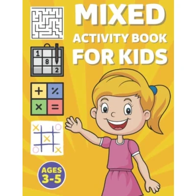 Mixed Activity Book For Kids Ages 3 5: Includes Mazes, Math Equations, Sudoku, Nurikabe, Tic Tac Toe / Solutions Included