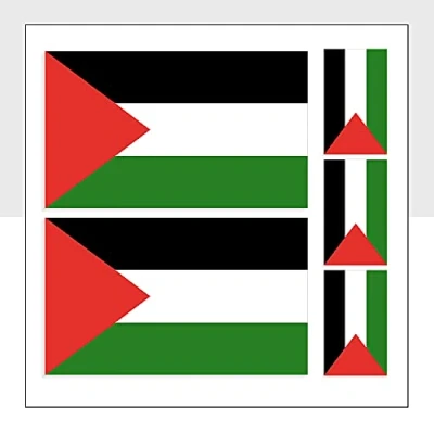 Pack contains: mixed pack of 5 state of palestine flag stickers – 2 stickers (100 × 60 mm) and 3 stickers (60 × 36 mm) Material: glossy vinyl with a waterproof finish. Suitable for both outdoor and indoor uses Usage: suitable for application on cars, bikes, cycles, laptops, cards, helmets, fridges, windows, and bumpers Application: peel from the backing paper and apply to a clean, dry, and smooth surface additional use: suitable for arts and crafts projects Origin: Manufactured and dispatched from the UK.