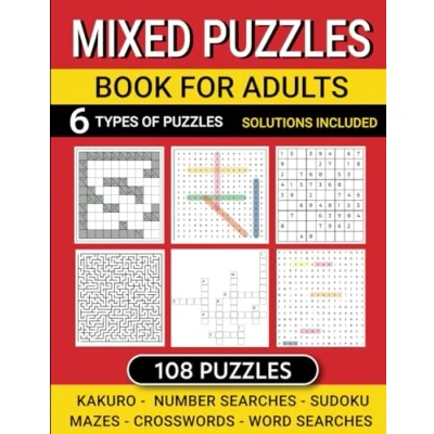Mixed Puzzles Book For Adults: Includes Mazes, Word Searches, Kakuro, Sudoku, Crosswords and More