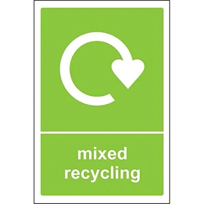 Mixed Recycling bin Sign 1.2mm Rigid plastic 200mm x 150mm Digitally printed for extra durability Drill and screw in position or use double sided tape to mount onto suitable surface., Manufacturer: KPCM Display ltd