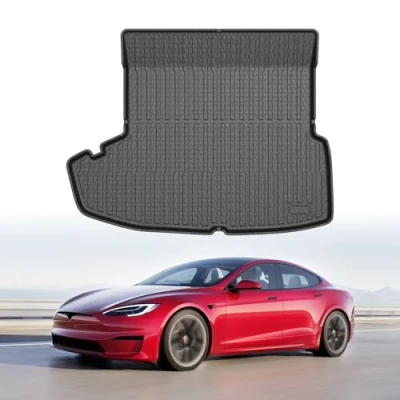 Custom Fit for Model S Long Range/Plaid: Trunk mat is only compatible with 2021 2022 2023 Tesla Model S. Does Not for 2012-2020 Model S. 2023 Newly Update: Cargo mat is made of upgraded quality TPE materials with strong durability and flexibility. Cargo liner features skid-resistant, easy to recover, non-toxic and odorless. Let you and your family stay healthy inside the car. Creative Anti-skid Pattern: Textured skid-resistant surface mat can prevent items from sliding during the trip. Larger coverage design can trap sand, water, mud, dirt, rain, muck. Protect your vehicle floor from any other messy accidents. Raised Edge Protection: The trunk liners have high edges all the way around to prevent liquids and debris from reaching your original floor. Make sure the mess stays on the liner and off your original clean carpet. Easy to Clean: With the weatherproof and stain-resistant surface, cargo liner is easier to clean by wiping with wet towel or rinsing with water directly. Quick and simple to make your mat look new again.