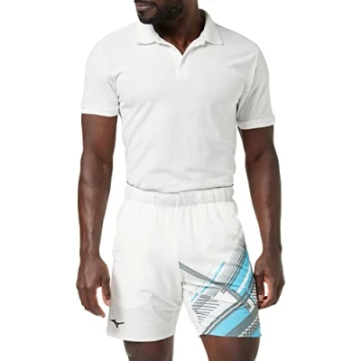 Standard 8-inch cut. Lightweight stretch material for superior breathability and freedom of movement 2 open pockets with mesh lining and internal drawstring for secure fit Thermal finish Graphics inspired by the MizunoTennis Archive