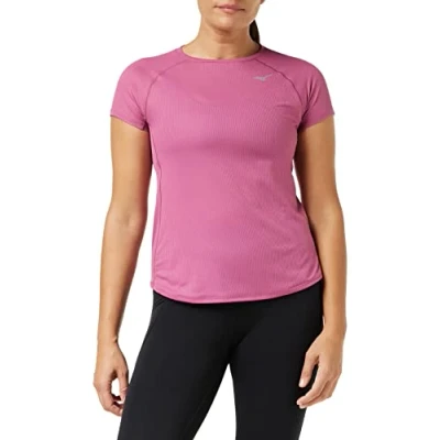 Shop Mizuno Dryaeroflow Tee Magenta Haze Women Size XSnow. -Sustainable material. -DryAeroFlow technology keeps high breathability even in wet condition and dries material with high heat release. -Dynamotion Fit patterning for better anatomical fit of garment, offering freedom of movement. -Branded neck tape on the back of the neck. -Reflective details for better visibility during night run. -Aurora reflective on the back.