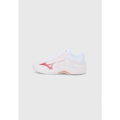 Mizuno Lightning Select Volleyball shoes white/rose elegance/lava falls Sale at Zalando UK | Upper material: synthetics/textile/Lining: textile/Sole: synthetics/Insole: textile | Sale order at Zalando UK! Size: 8. Color: White/rose elegance/lava falls. Pattern: print.