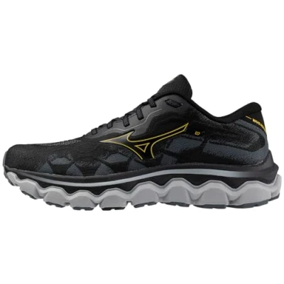 Mizuno Mens Wave Horizon 7 Running Shoe, Black/Citrus, 8 UK