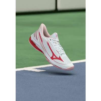 Mizuno WAVE Exceed TOUR 7 AC Multicourt tennis shoes white/fiery red/pinkesque Sale at Zalando UK | Upper material: textile/synthetics/Lining: textile/Sole: synthetics/Insole: textile | Sale order at Zalando UK! Size: 8.5. Color: White/fiery red/pinkesque. Pattern: print.