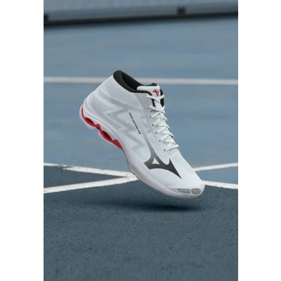 AmazonMIZUNO WAVE TECHNOLOGY: Improved Wave structure that maximizes support in jumping movements, with plate extension to the forefoot for superior stability and optimal energy return LIGHTWEIGHT POWNCE MIDESOLE: Innovative material that delivers the same energy return with 10% reduced weight, ensuring soft, responsive cushioning for high performance FOUR LAYER UPPER: Transparent mesh with Dyna-Eyelet Wrap system that creates a seamless wraparound fit, hugging the entire foot for optimal comfort and support ROUNDED HEEL DESIGN: Specific structure that supports jumping movements from the heel, improving stability during step forward and propulsion in jumps MID-TOP VOLLEY SHOE: Wave Lightning Pro Mid model in white, black and red coloring, designed for gamers looking for excellent performance with lightweight and cushioning