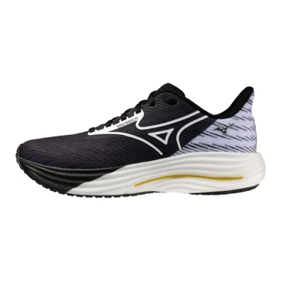 Shop Mizuno WAVE RIDER 29 Running Shoes Black/White/Gold Women/Men Size 7now. PRECISION MEETS POSSIBILITY Mizuno Running shoes are steeped in the design principles of technical simplicity and limitless performance, sharing parallels with Origami art. Bold, straight lines accentuate the geometrical importance of the midsole, whilst special graphics on the sockliner further incorporate the essence of Origami art. The Origami Pack is an ode to the runners. This shoe is an excellent choice for everyone from beginners to marathon fans who like moderate cushioning. The incorporation of NITROGEN INFUSED MIZUNO ENERZY NXT takes the softness and energy output to the next level in this shoe. It helps you smoothly transition from ground contact to pushing off. The MIZUNO WAVE structure works in concert to support forward propulsion and smooth weight transfer. 1) MIZUNO ENERZY NXT NITROGEN INFUSED MIZUNO ENERZY NXT is used throughout both the top and bottom of the midsole for high softness and energy output. 2) MIZUNO WAVE In addition to providing both cushioning and stability, the WAVE PLATE supports forward propulsion and smooth weight transfer.