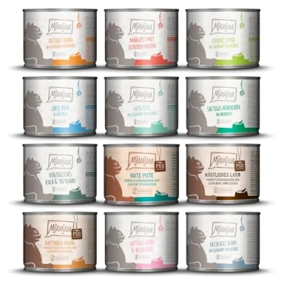 MjAMjAM Premium Wet Food for Cats Delicious Box, Pack of 12 (12 X 200 g), Grain free with Extra Meat