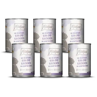 Grain-free, natural cat food with extra high meat content The complete feeds from MjAMjAM offer cat nutrition that is appropriate to the species, natural and close to the prey. Our most important supplier, nature, provides us with all the important ingredients to meet our philosophy and the needs of your pet. For our meals, we mainly use ingredients that come from regional farms. Raised or grown with much love, these are subject to the strictest quality controls. We only use ingredients that are 100% food quality. Animal welfare is our top priority. For this reason, we deliberately avoid: Colourings and attractants, sugar, gluten, cereals and soya, vegetable by-products and synthetic preservatives.