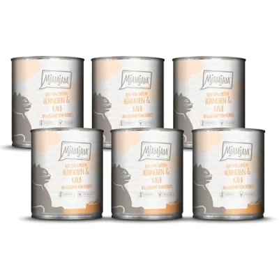 MjAMjAM Premium wet food for cats DUO of tender chicken & veal with steamed pumpkin, pack 6 (6 x 800g), grain free extra meat