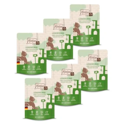 MjAMjAM Premium wet food for cats Quetschie pure meaty feast delicious beef, pack of 6 (6 x 300 g), grain free with extra meat