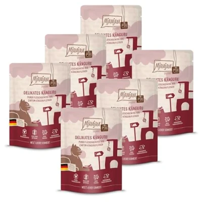 MjAMjAM Premium wet food for cats Quetschie pure meaty feast delicious kangaroo, pack of 6 (6 x 300 g), grain free with extra meat