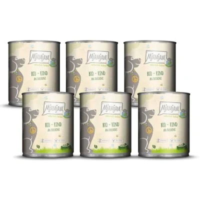 MjAMjAM Premium wet food for dogs naturally delicious BIO beef with courgette, 6 pack (6 x 800g), grain free extra meat