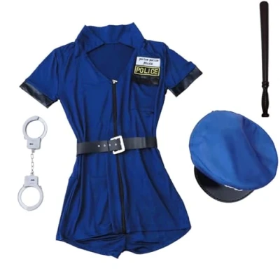 Ladies Sexy Police Woman Costume Halloween Officer Cop Fancy Dress Outfit Copper Uniform , Great choice for any Halloween parties, Hen Stag, ect . Includes: Stretchy Zip up police dress with attaching badge Matching Police hat. Faux Leather Belt Metal Handcuffs Truncheon(Baton) Dress Material: Spandex Available Sizes: Female S/M UK 6-10 (Dress Length: 80cm, Chest: 30''-36'' , Waist: Elastic 26''-32'') L/XL UK12-16 (Dress Length: 82cm, Chest: 34''-40'', Waist: Elastic 28''-36'') Care Instruction: Dry clean or cold hand wash only. Please note we have noticed some returns for this item with clear signs of wear, which were against Amazon return policy and caused serious damage to our brand. All those cases will be taken as return fraud and reported to Amazon and local Police Office., Manufacturer: MJPARTY