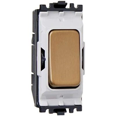 Double 20 Amp one way switch module Compatible with Aspect and Edge module grid frontplates Satin Gold finish Matching metal decorative caps White inserts, Manufacturer: MK