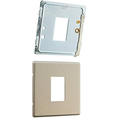 Single gang LJU6C datacom frontplate for single module Slim profile front plates of only 4mm Lacquered Brushed Steel finish Concealed screws provide a clean and flawless finish to the frontplate Accept industry standard Euro or LJU6C snapfit modules, Manufacturer: MK