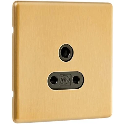 Single gang, round pin, unswitched socket outlet Switch contacts with silver contact points on both surfaces for good continuity Satin Gold finish Concealed screws provide a clean and flawless finish to the frontplate Black inserts, Manufacturer: MK